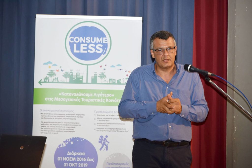 «Λιγότερο νερό, λιγότερη ενέργεια, λιγότερα απόβλητα» είναι το σύνθημα του Ευρωπαϊκού διακρατικού προγράμματος Consume-less Med (καταναλώνω λιγότερο στη Μεσόγειο) για τον αειφόρο τουρισμό το οποίο υλοποιείται από τον Ευρωπαϊκό Όμιλο Εδαφικής Συνεργασίας «Εύξεινη Πόλη». Οι στόχοι του προγράμματος παρουσιάστηκαν σε εκδήλωση που πραγματοποιήθηκε σε συνεργασία με τον δήμο Ν. Προποντίδας χθες Τρίτη 16-7-2019 στο δημοτικό θέατρο Ν. Μουδανιών.