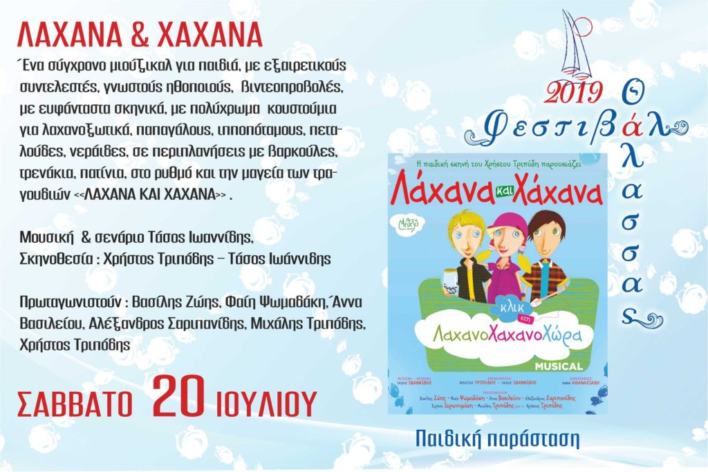 Μια βραδιά γεμάτη «Χάχανα και Λάχανα» υπόσχεται το παιδικό μιούζικαλ «Κλικ στη Λαχανοχαχανοχώρα» που θα ανέβει στο Αμφιθέατρο Νέων Μουδανιών το Σάββατο 20 Ιουλίου 2019 στη Χαλκιδική στα πλαίσια του Φεστιβάλ Θάλασσα.