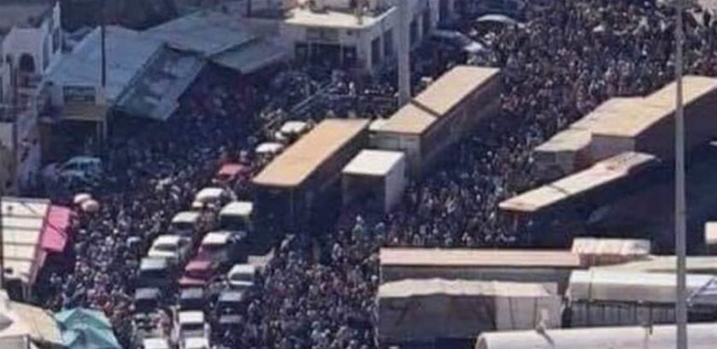 Το λιμάνι της Σαντορίνης φαίνεται να είναι κατακλυσμένο από χιλιάδες τουρίστες.