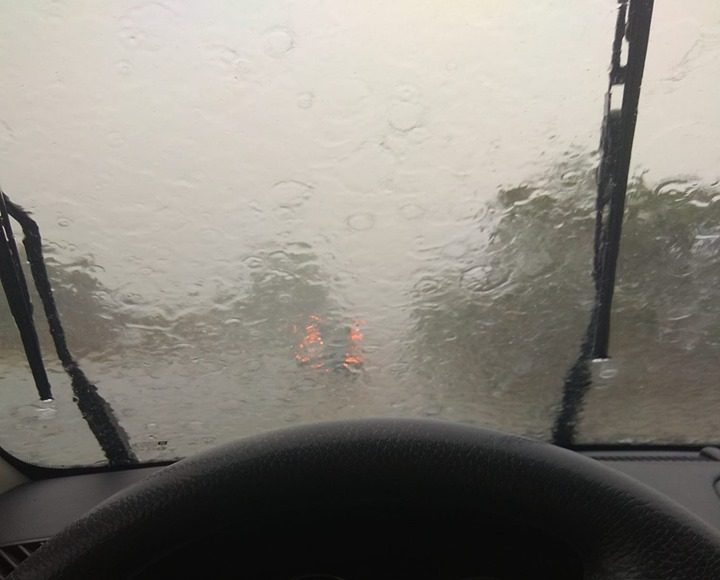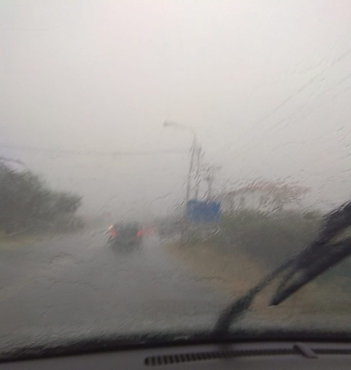Η βροχή ήταν πολύ έντονη με δύσκολη ορατότητα για τους οδηγούς με αποτέλεσμα να σταματούν μέχρι να περάσει η μπόρα.