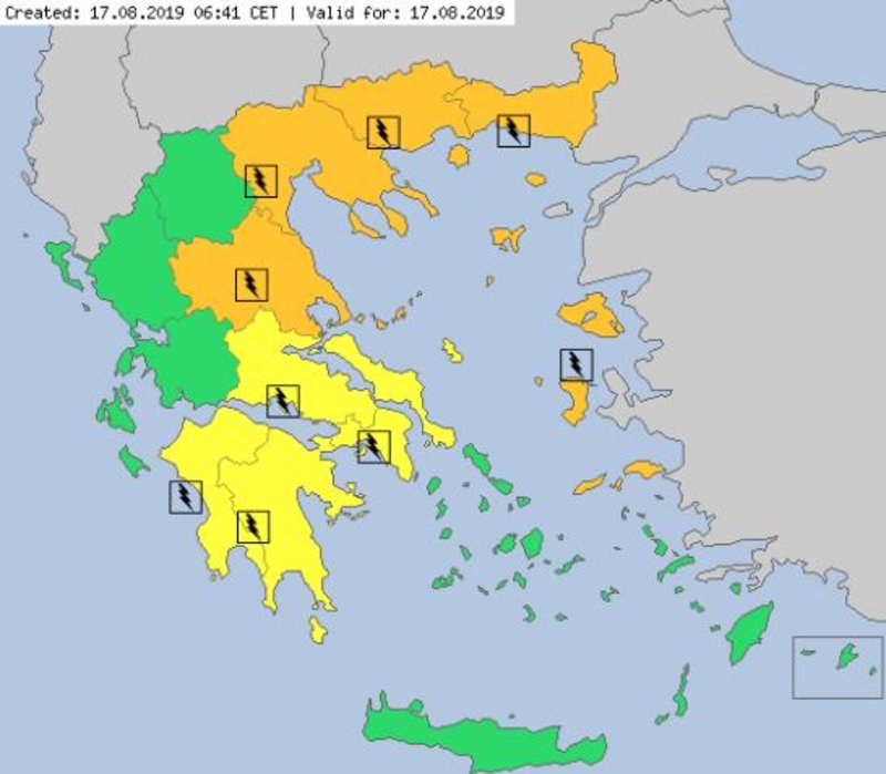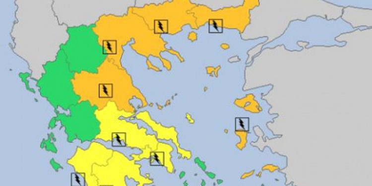 Συγκεκριμένα, το Meteo Alarm επισημαίνει ότι κατά τόπους ισχυρές καταιγίδες, πιθανώς συνοδευόμενες από χαλαζοπτώσεις, θα εκδηλωθούν σε ανατολική και κεντρική Μακεδονία, στη Θεσσαλία και στα νησιά του βορειοανατολικού Αιγαίου.