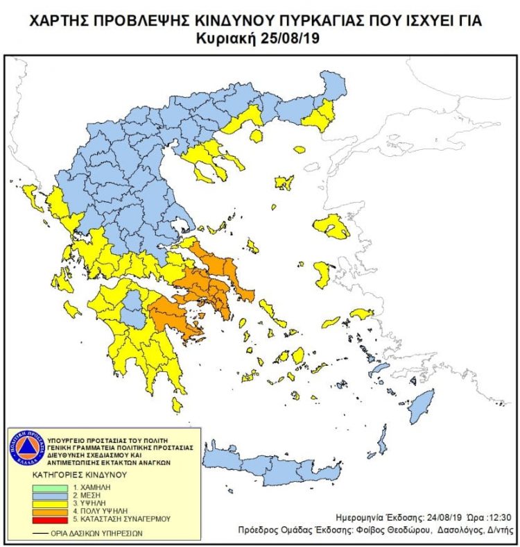 Κατόπιν σχετικής ενημέρωσης από την Γενική Γραμματεία Πολιτικής Προστασίας, για σήμερα Κυριακή 25-08 -2019, ο Δείκτης Κινδύνου Πυρκαγιάς για όλη τη Χαλκιδκική είναι Κατηγορίας 3 Υψηλός (κλίμακα από 1-5), με ιδιαίτερες καιρικές συνθήκες όπως, η αυξημένη ένταση των ανέμων και η πολύ υψηλή θερμοκρασία καθ ́ όλη την διάρκεια της ημέρας.