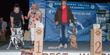 Έκθεση μορφολογίας σκύλων που διοργάνωσε ο Κυνοφιλικός Όμιλος Χαλκιδικής πραγματοποιήθηκε στο Διονυσίου Χαλκιδικής, στις 7-8 Σεπτεμβρίου 2019 στο γήπεδο Διονυσίου.