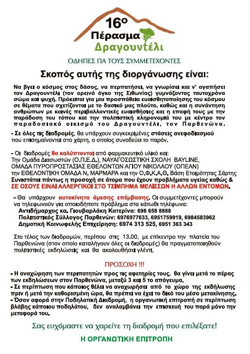 Στο 16ο Πέρασμα Δραγουντέλι θα υπάρχουν οκτώ (8) περιπατητικές διαδρομές και μία (1) ποδηλατική.