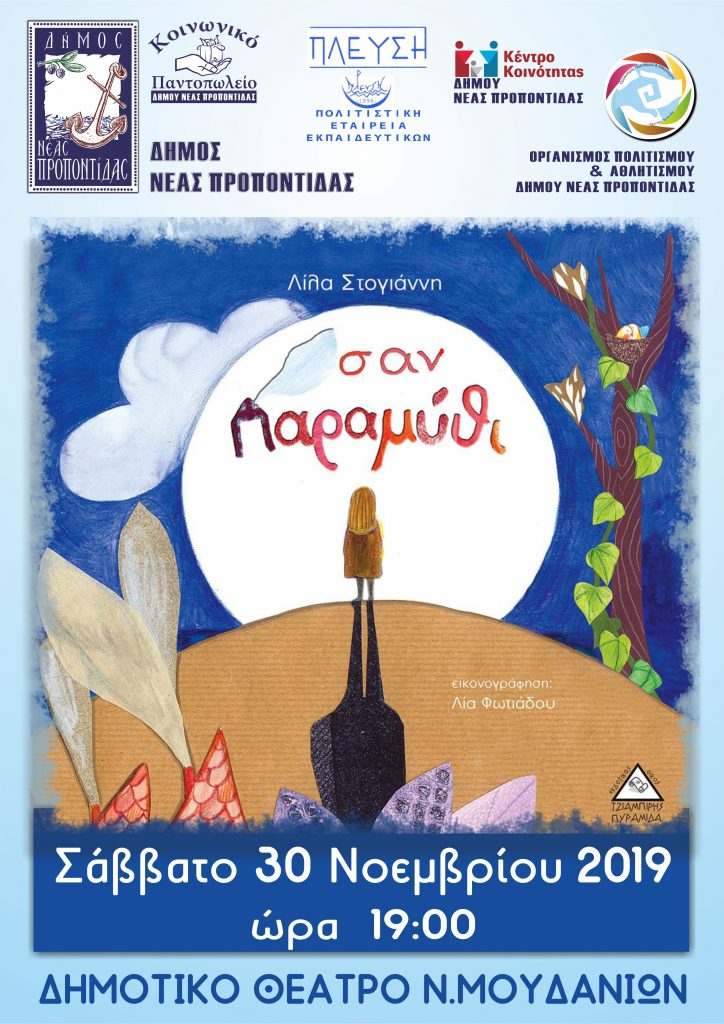 Παρουσίαση του καινούριου βιβλίου της Νηπιαγωγού Λίλας Στογιάννη “Σαν Παραμύθι” των Εκδόσεων Τζιαμπίρη Πυραμίδα θα πραγματοποιηθεί το Σάββατο 30 Νοεμβρίου και ώρα 19:00 στο Δημοτικό Θέατρο Ν. Μουδανιών.