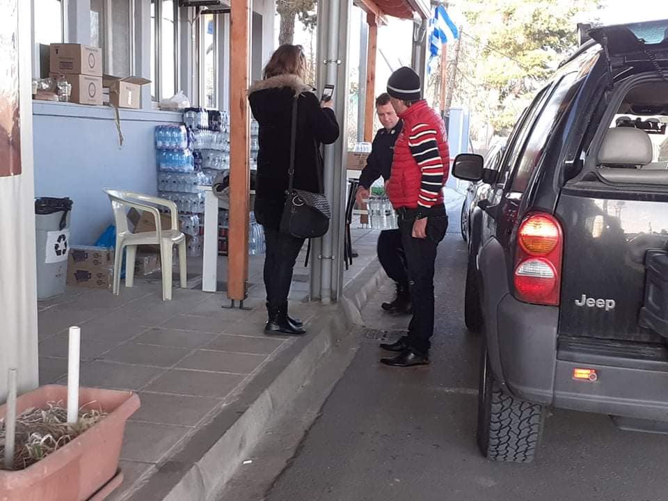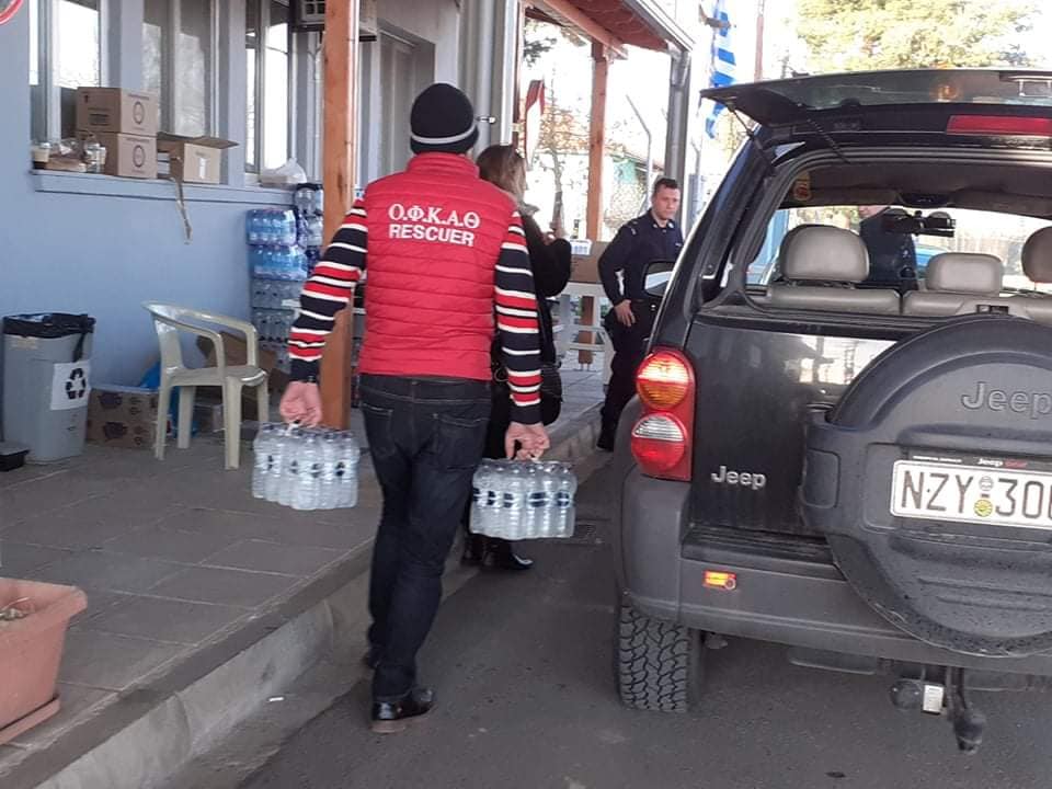 Κλιμάκιο εθελοντών του ΟΦΚΑΘ ταξίδεψε σήμερα μέχρι τα σύνορα και πρόσφεραν στο τελωνείο για τις ανάγκες των αστυνομικών νερά και είδη πρώτης ανάγκης.