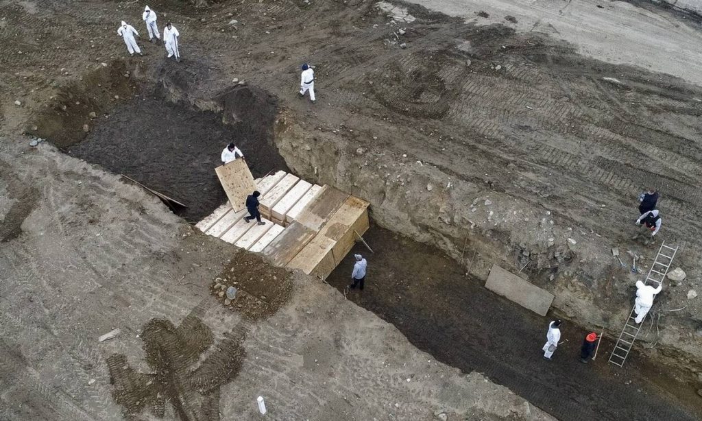 Βίντεο από drone «συνέλαβε» τη στιγμή που συνεργεία σκάβουν ομαδικούς τάφους και τοποθετούν ορισμένα μόνο από τα χιλιάδες θύματα του νέου κορονοϊού στη Νέα Υόρκη, σε έκταση στο Hart Island.