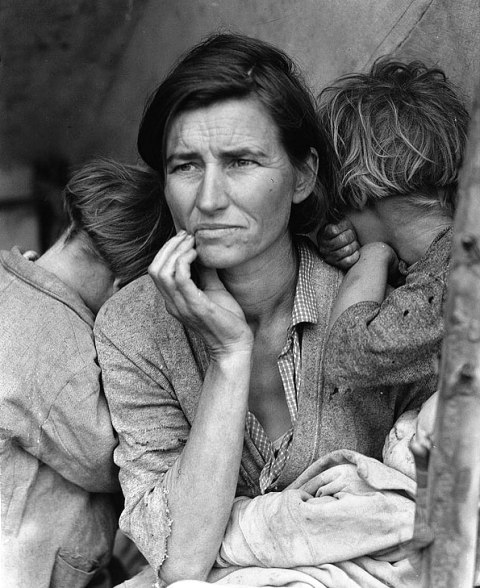 Η φωτογραφία τραβήχτηκε το 1936 σε ένα χωράφι στην περιοχή Νιπόμο της Καλιφόρνια, όπου είχε εγκατασταθεί πρόχειρα η μητέρα με τα εφτά παιδιά της. Η φωτογράφος, Δωροθέα Λανγκ, συνάντησε τυχαία τη γυναίκα, που θα την έκανε διάσημη σε όλο τον κόσμο. …