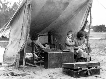 Τον Μάρτιο του 1936 η Δωροθέα Λανγκ βρισκόταν στον κάμπο του Νιπόμο της Καλιφόρνια, όταν συνάντησε τυχαία μια γυναίκα με τα παιδιά της. Η φωτογράφος σταμάτησε και τράβηξε έξι φωτογραφίες, κοντινές και γενικές. Το σκηνικό ήταν απλό και φτωχικό. Όπως και η ζωή των εικονιζόμενων. Μια πρόχειρα στερεωμένη τέντα και λιγοστά υπάρχοντα, τα περισσότερα μέσα σε δύο βαλίτσες και μια καρέκλα, ήταν ολόκληρη η περιουσία της πολυμελούς οικογένειας.