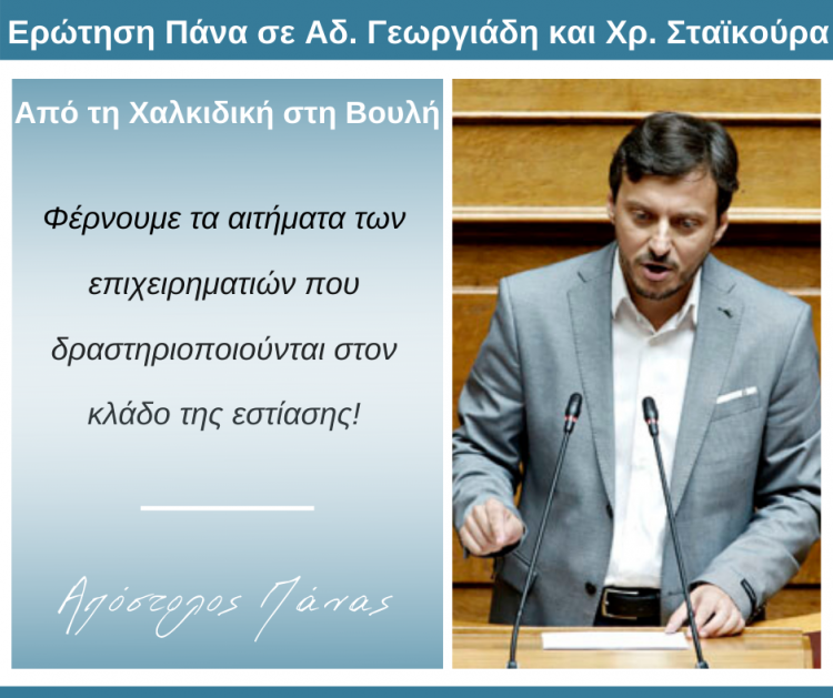 Ερώτηση για το ποια ακριβώς είναι τα μέτρα που προτίθεται η Κυβέρνηση να λάβει για να αντισταθμίσει την τεράστια οικονομική ζημία που θα υποστούν οι επιχειρήσεις του κλάδου της εστίασης, απηύθυνε ο Βουλευτής Χαλκιδικής με το Κίνημα Αλλαγής, Απόστολος Πάνας, προς τους Υπουργούς Ανάπτυξης και Οικονομικών.