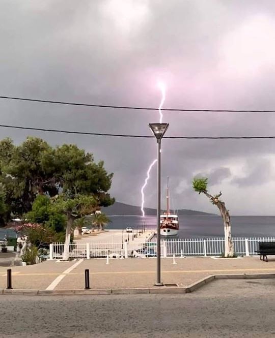 Πάντως, εξαιτίας των κεραυνών υπάρχει διακοπή ρεύματος στο Πόρτο Κουφό, την Τορώνη και την παραλία της Συκιάς.