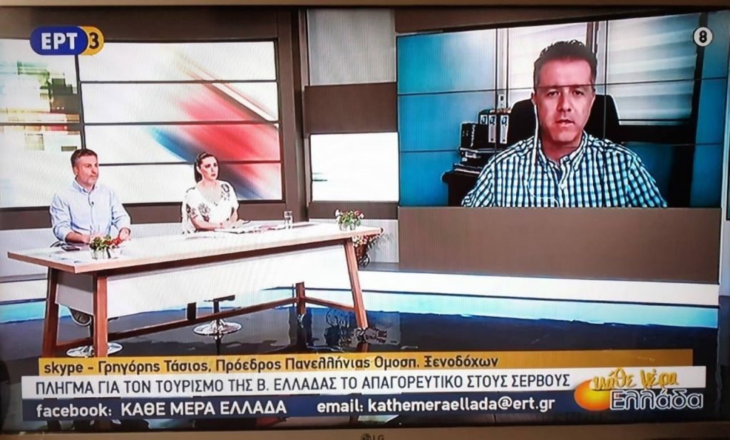 Με αφορμή την απαγόρευση εισόδου των Σέρβων εξαιτίας της έξαρσης της πανδημίας του κορωνοϊού στη χώρα τους, ο Πρόεδρος της Πανελλήνιας Ομοσπονδίας Ξενοδόχων κ. Γρηγόρης Τάσιος μίλησε στην ΕΡΤ3 για το πλήγμα που επιφέρει η εξέλιξη αυτή στον τουρισμό της Βόρειας Ελλάδας.