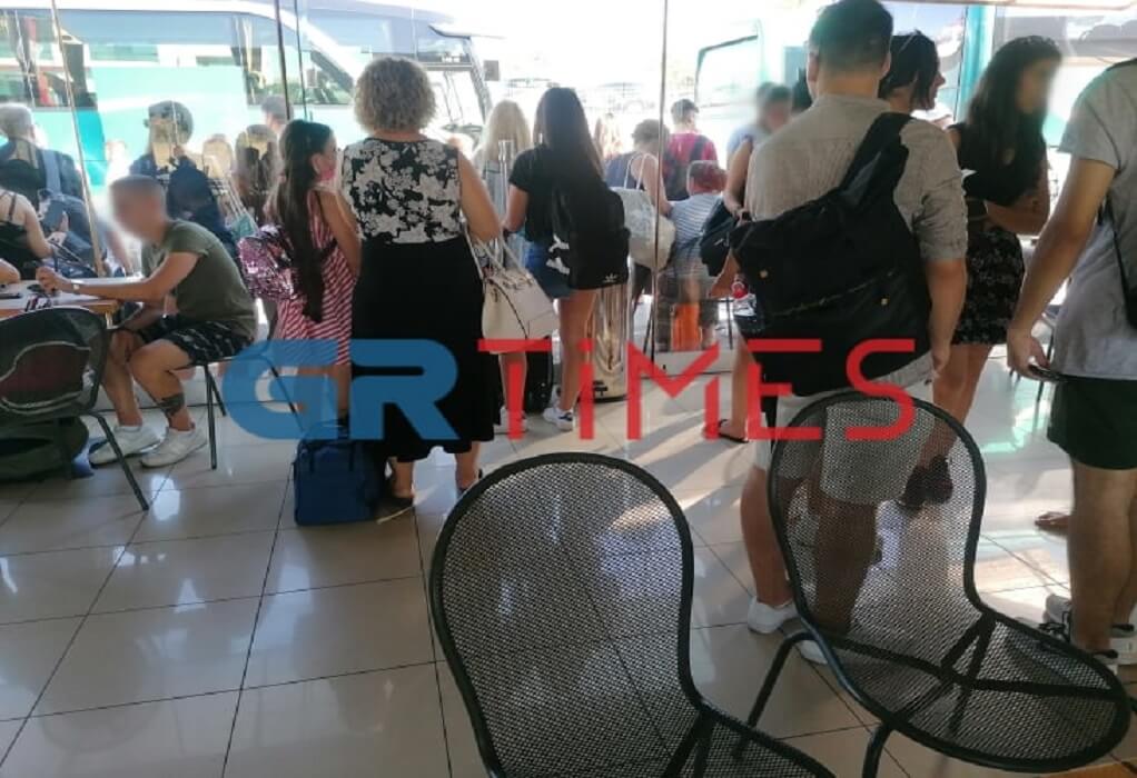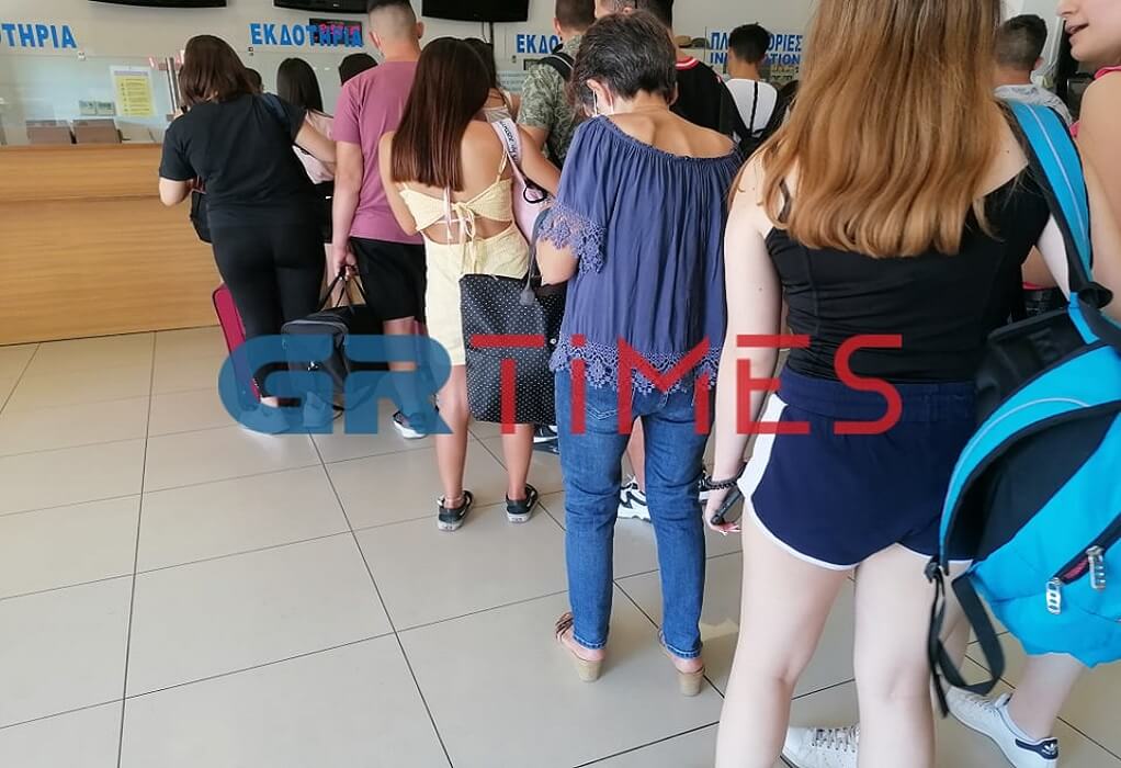 Όπως θα δείτε και στις φωτογραφίες του GRTimes.gr, ουρές παρατηρούνται στα εκδοτήρια του ΚΤΕΛ, χωρίς να τηρούνται οι απαραίτητες αποστάσεις ασφαλείας, ενώ πολλοί είναι αυτοί που δεν φοράνε μάσκα.