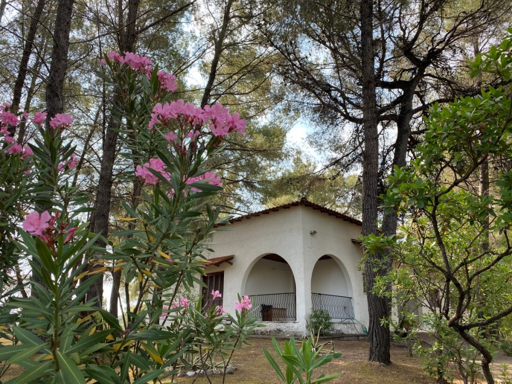 “Φτάσαμε στην παραλία με βάρκα και ξεκινήσαμε να ανεβαίνουμε σε ένα μικρό λόφο, όπου παρεμπιπτόντως στεγάζεται το σπίτι μου σήμερα. Για πρώτη φορά είδα μέσα από τα πεύκα, το περίγραμμα του Αγίου Όρους απέναντι, τη θάλασσα και τους μικρούς κόλπους με τις υπέροχες παραλίες, με τα όμορφα σαν γλυπτά πετρώματα, τα πεύκα, τις κουμαριές και τις μυρτιές, τα κρίνα της θάλασσας. Το έδαφος, με μικρές πτυχές, η φυσική κλίση προς τη θάλασσα και η θέα προς τον Άθω, προσέφερε μια ιδανική τοποθεσία για τα σπίτια.”