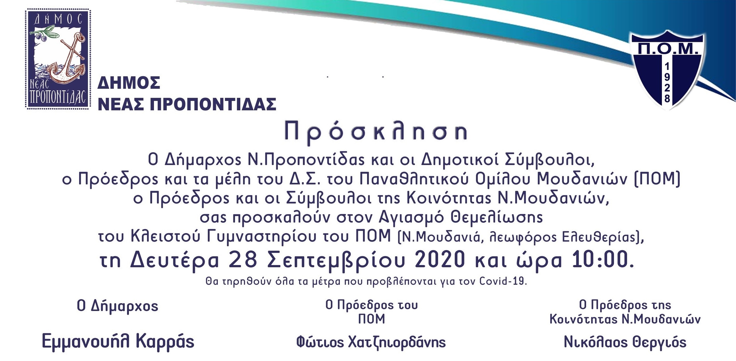 Αλλαγή ώρας του αγιασμού θεμελίωσης του Κλειστού Γυμναστηρίου του ΠΟΜ Από admin 5 έτη πριν FacebookTwitterReddit Ο αγιασμός θεμελίωσης του κλειστού γυμναστηρίου του ΠΟΜ θα πραγματοποιηθεί τη Δευτέρα 28 Σεπτεμβρίου 2020 και ώρα 10:00 π.μ αντί για 11: 00 που αρχικά είχε ανακοινωθεί. Categories: Featured, Αθλητικά, Χαλκιδική Tags: Δήμος Νέας ΠροποντίδαςΝέα ΜουδανιάΠΟΜ Σχετικό περιεχόμενο Χαλκιδική: Πυροβόλησε την σύντροφό του επειδή του είπε να χωρίσουν Από admin 21 Ιανουαρίου, 2026 Κλειστοί δρόμοι σε Θεσσαλονίκη - Χαλκιδική: Καθίζηση γέφυρας, κατέρρευσε δρόμος Από admin 21 Ιανουαρίου, 2026 Δράση εμβολιασμού παιδιών σε οικισμούς Ρομά από το Κέντρο Υγείας Νέων Μουδανιών Από admin 21 Ιανουαρίου, 2026