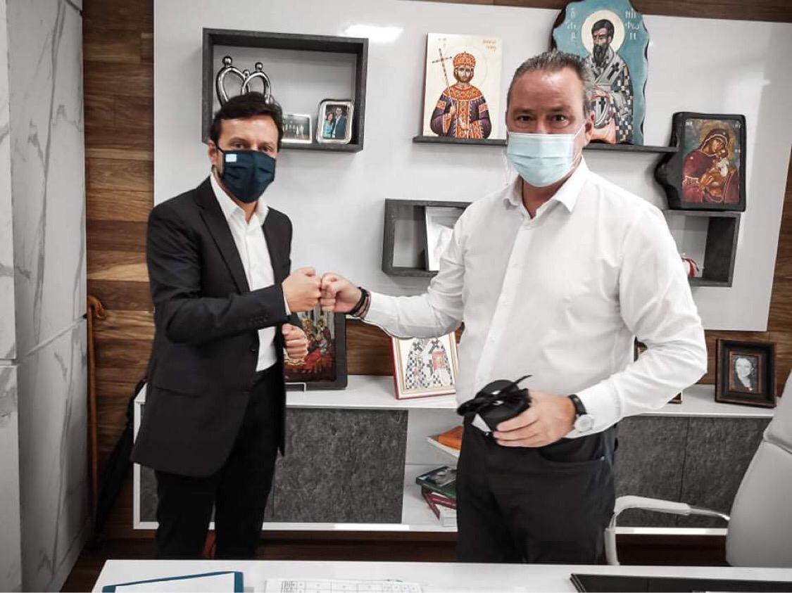 Ταυτόχρονα, ο Βουλευτής επισκέφθηκε και το Δημαρχείο της Κατερίνης, όπου συναντήθηκε με τον Δήμαρχο της πόλης κ. Κώστα Κουκοδήμο. Στο επίκεντρο της συνάντησης βρέθηκε η κατάσταση που αντιμετωπίζει η αυτοδιοίκηση λόγω του κορωνοϊού , το πρόγραμμα Αντώνης Τρίτσης και οι ενέργειες του Δήμου Κατερίνης σε ζητήματα αγροτικής αλλά και τουριστικής ανάπτυξης.