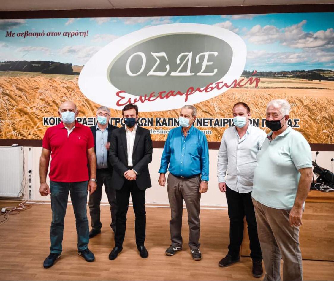 Στα πλαίσια της επίσκεψης συναντήθηκε με τον Συνεταιρισμό Παραγωγών ΠΕΣΚΟ, συνεταιρισμό παραγωγών καπνού, ακτινιδίων, σταφυλιών και άλλων γεωργικών προϊόντων της περιοχής καθώς και τον Συνεταιρισμό Καπνοπαραγωγών Κατερίνης ΑΣ ΣΑΜΨΟΥΣ, όπου είχε τη δυνατότητα να περιηγηθεί στους χώρους τους και να ενημερωθεί από τους εκπροσώπους τους για την παρούσα κατάσταση, που δυσχεραίνει την παραγωγή των αγροτικών προϊόντων. Επισημάνθηκαν επίσης οι δυσκολίες στην ανεύρεση εργατών γης, ενώ τονίστηκε η ανάγκη αλλαγής του αναχρονιστικού κανονισμού του ΕΛΓΑ.