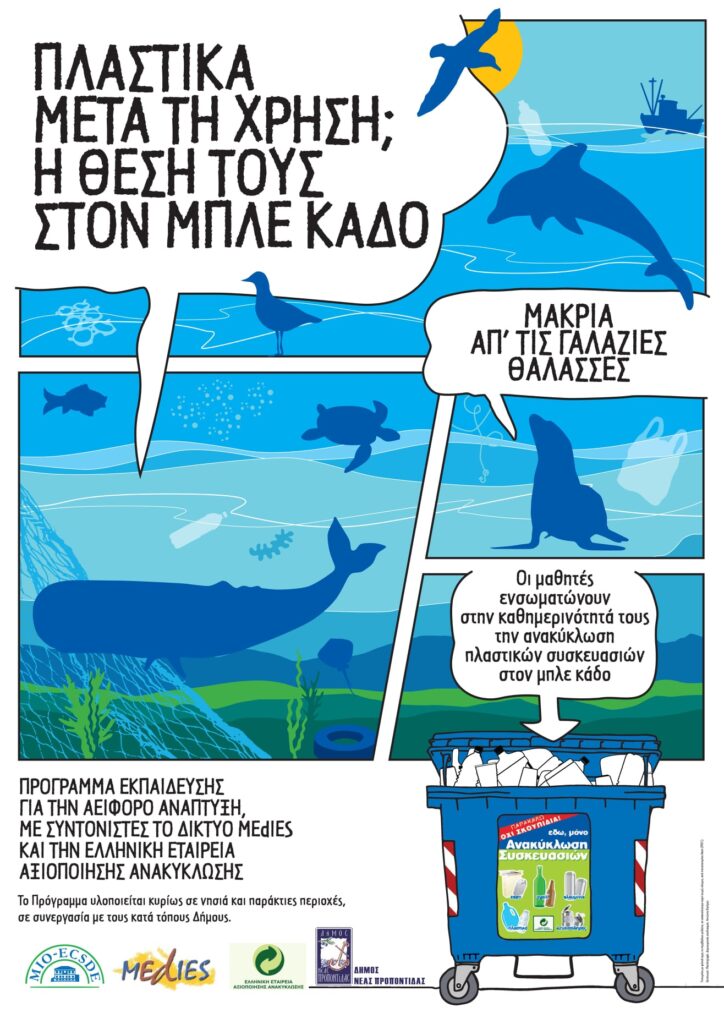 Ο Δήμος Νέας Προποντίδας, η Ελληνική Εταιρεία Αξιοποίησης Ανακύκλωσης (ΕΕΑΑ) και το Μεσογειακό Γραφείο Πληροφόρησης για το Περιβάλλον, τον Πολιτισμό και την Αειφόρο Ανάπτυξη (MIO-ECSDE)/ Μεσογειακή Εκπαιδευτική Πρωτοβουλία για το Περιβάλλον και την Αειφορία (Δίκτυο MEdIES) διοργανώνουν Ημερίδα Ενημέρωσης και Ευαισθητοποίησης με θέμα: «Πλαστικά μετά τη Χρήση; Η θέση τους στον Μπλε κάδο! Μακριά από τις γαλάζιες θάλασσες», την Πέμπτη 15 Οκτωβρίου 2020 (17:15 – 20:30) στο Δημοτικό Θέατρο Νέων Μουδανιών.