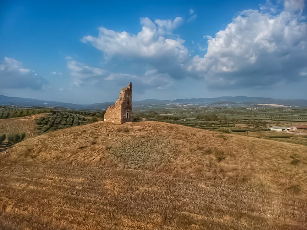 Ο πύργος χτίστηκε το 1374 και αποτελούσε κέντρο κτήματος της Μονής Δοχειαρείου.