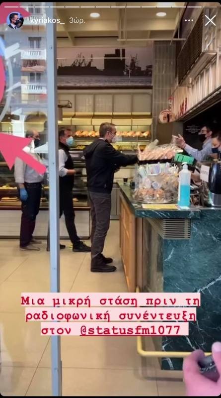 Μάλιστα ανέβασε και ο ίδιος istastory στο Instagram, κάνοντας λόγο για “μια μικρή στάση”. Ίσως ο πρωθυπουργός να πήρε και πακέτο για την Αθήνα, καθώς η σύζυγός του έχει αδυναμία στο τσουρέκι με σοκολάτα. Την προτίμησή της είχε αποκαλύψει σε γεύμα σε ξενοδοχείο της πόλης και ο Απόστολος Τζιτζικώστας είχε κάνει την επιθυμία της πράξη. (δείτε εδώ).