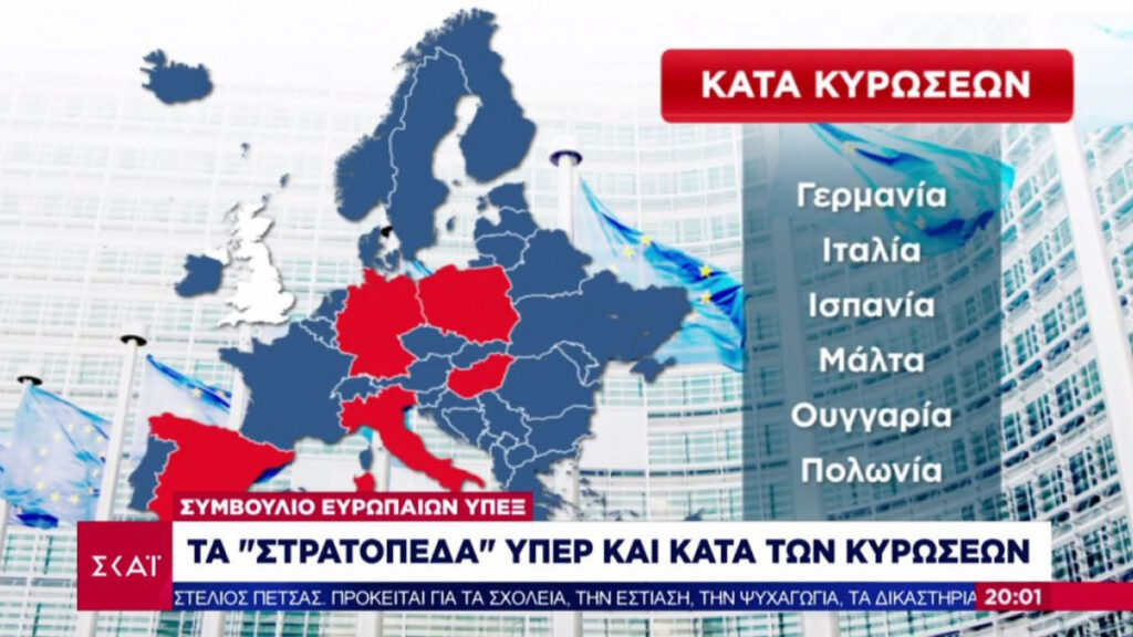 Όπως μετέδωσε ο ανταποκριτής του ΣΚΑΪ στις Βρυξέλλες, Γιάννης Παλαιολόγος, με βάση τη σημερινή συνεδρίαση των Ευρωπαίων υπουργών Εξωτερικών, τα δύο «στρατόπεδα» διαμορφώνονται ως εξής: