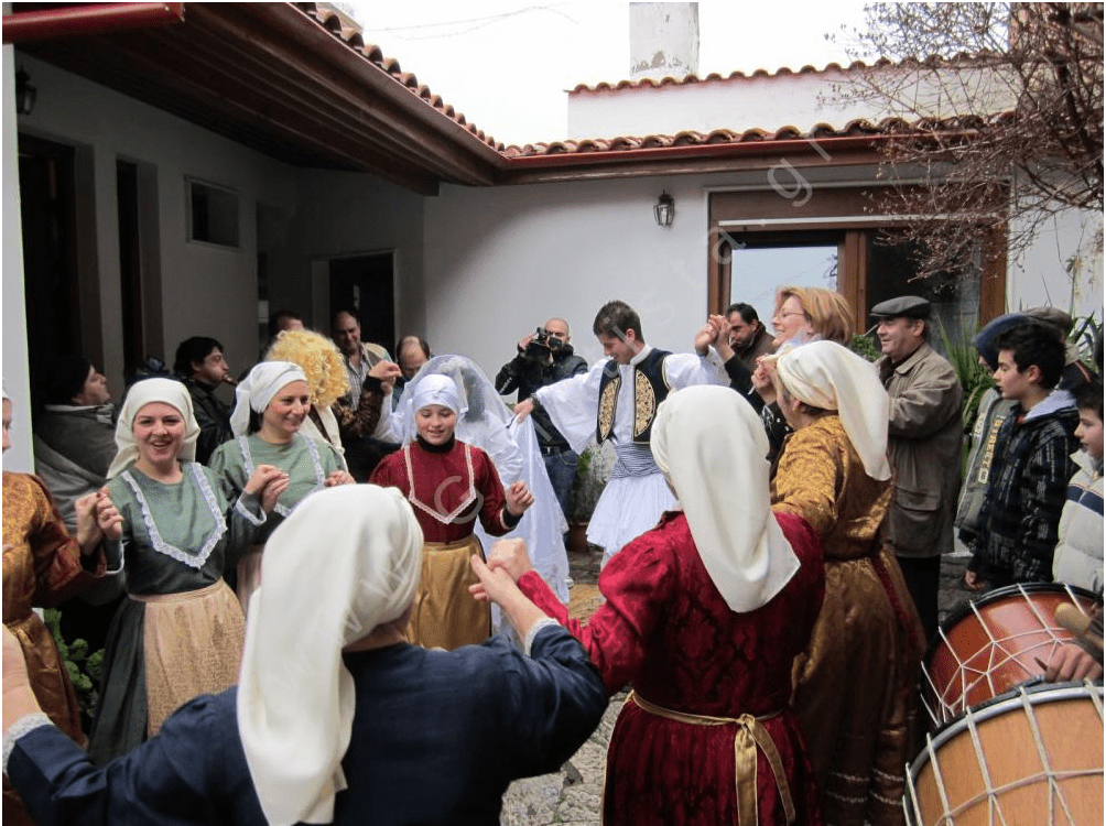 Μετά τη Θεία Λειτουργία, τα νταούλια και οι ζουρνάδες παίζουν το τραγούδι «απόψε μας κλέψαν τη Μανιώ, τρεις Τούρκοι αρβανιτάδες», δίνοντας έτσι το σύνθημα για να αρχίσει η γιορτή και το γλέντι, με τη συμμετοχή όλων των κατοίκων του χωριού και όχι μόνο.
