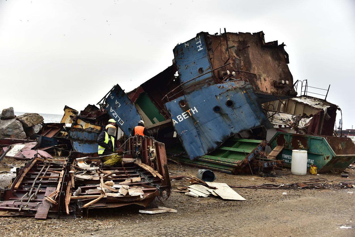 Με γοργούς ρυθμούς συνεχίζεται η διάλυση του πλοίου “Ελίζαμπεθ” στο λιμάνι των Ν. Μουδανιών.