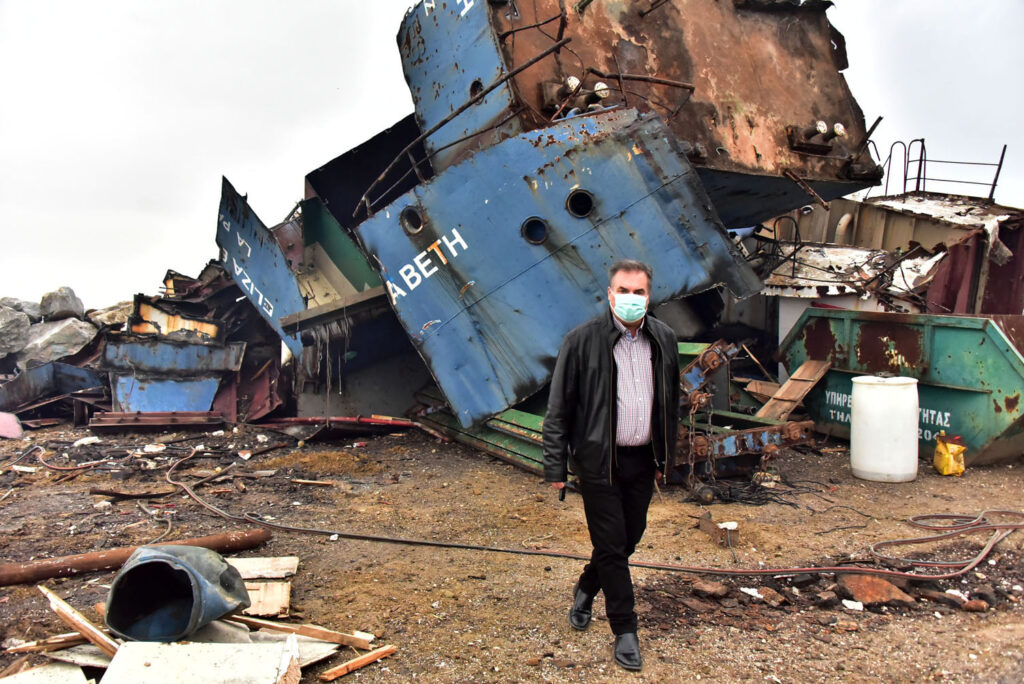 Με γοργούς ρυθμούς συνεχίζεται η διάλυση του πλοίου “Ελίζαμπεθ” στο λιμάνι των Ν. Μουδανιών.