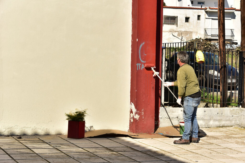Στην άμεσο ελαιοχρωματισμό των τοίχων, τους οποίους άγνωστοι έβαψαν με σπρέι συνθήματα ομάδων, σε σχολεία αλλά και δημοτικά κτίρια στη Ν. Τρίλια προχώρησε η Δημοτική αρχή.