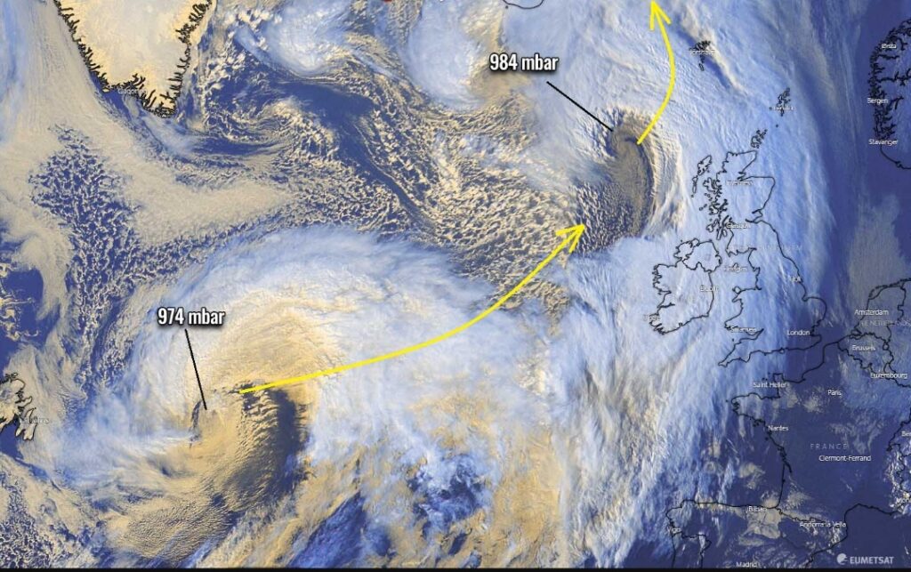 Σε κόκκινο συναγερμό βρίσκεται τις επόμενες ώρες έως το μεσημέρι της Πέμπτης η βόρεια Ευρώπη, καθώς δύο διαδοχικοί εξωτροπικοί κυκλώνες, θα σαρώσουν το Ηνωμένο Βασίλειο και την Νορβηγία, αλλά και την Ισλανδία. Οι άνεμοι αναμένεται να φτάσουν και τα 150km/h, ενώ έχει ήδη εκδοθεί προειδοποίηση για ακραίο κυματισμό στις ακτές, ύψους ακόμη και 16 μέτρων! Παράλληλα, σφοδρές χιονοπτώσεις στα ορεινά των χωρών αυτών, θα αφήσουν έως και 100cm φρέσκου χιονιού.