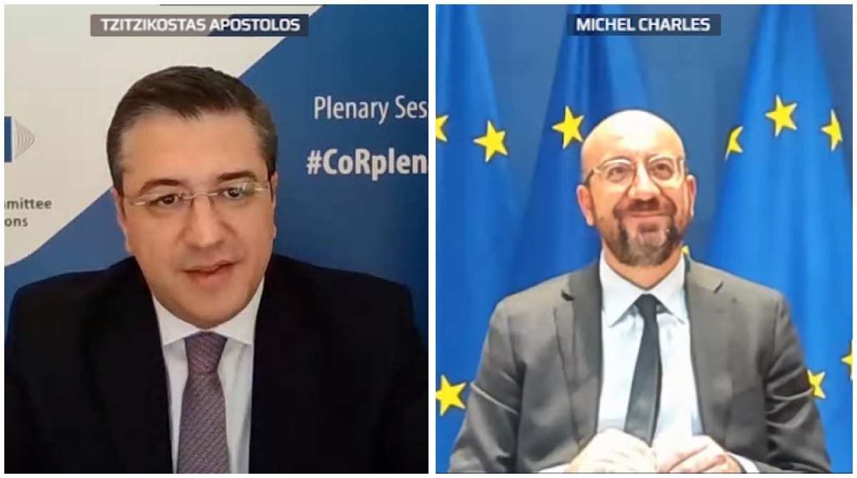 Τηλεδιάσκεψη με τον Πρόεδρο του Ευρωπαϊκού Συμβουλίου Charles Michel στο πλαίσιο της συνεδρίασης της Ολομέλειας της Ευρωπαϊκής Επιτροπής των Περιφερειών είχε ο Πρόεδρος της Επιτροπής, Περιφερειάρχης Κεντρικής Μακεδονίας, Απόστολος Τζιτζικώστας.