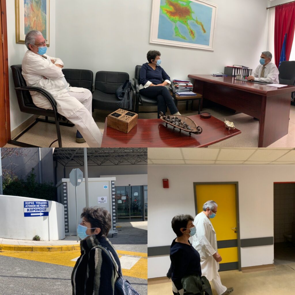 Τον Διοικητή του Γενικού Νοσοκομείου Χαλκιδικής κ. Κωνσταντίνο Δεδελούδη επισκέφτηκε η Κυριακή Μάλαμα, συνοδευόμενη από τον ιατρό του Νοσοκομείου και μέλος του Διοικητικού Συμβουλίου του Πανελληνίου Ιατρικού Συλλόγου Δημήτριο Βαρνάβα. Αντικείμενο της επίσκεψης αποτέλεσε η ενημέρωση για την αντιμετώπιση του τρίτου κύματος της πανδημίας στη Χαλκιδική, οι ανάγκες του Νοσοκομείου κι η πορεία των εμβολιασμών. Όπως σημείωσαν τα στελέχη του Νοσοκομείου, τις επόμενης ημέρες κι εβδομάδες αναμένεται η κορύφωση της πίεσης στο Νοσοκομείο, με δεδομένο ότι η δομή μετατρέπεται πλέον, σε μεγάλο βαθμό, σε νοσοκομείο – covid, με τις περισσότερες κλινικές του να προγραμματίζεται να μετατραπούν σε κλινικές αντιμετώπισης περιστατικών κορονοϊού.