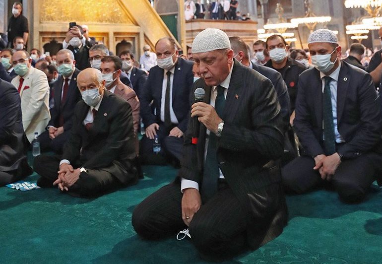 Στο πλαίσιο αυτό, η περίοδος της νηστείας για τους μουσουλμάνους στην Τουρκία ξεκίνησε με προσευχή του μουεζίνη από τον μιναρέ και ευχή για καλό ραμαζάνι τοποθετημένη στον τρούλο της βασιλικής της Αγίας Σοφίας.