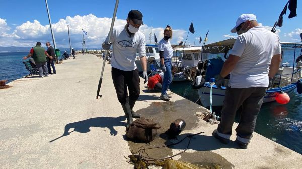 Οι δύτες περισυνέλλεξαν παλιά δίχτυα, σκουριασμένα σίδερα, παλιά αλιευτικά εργαλεία και πλαστικά δοχεία.