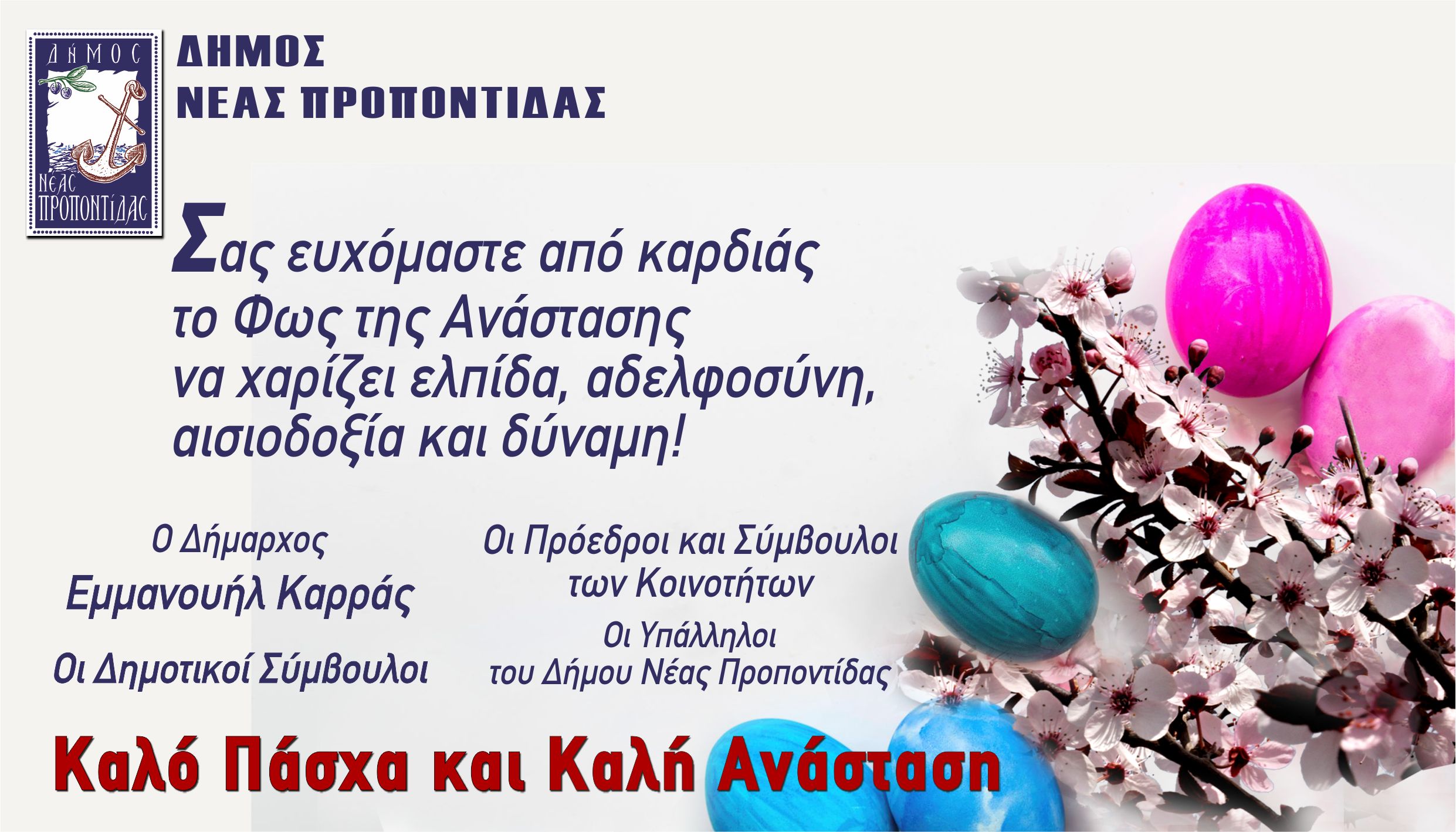 Ευχές του δημάρχου Νέας Προποντίδας Εμ. Καρρά, των δημοτικών και τοπικών συμβούλων και υπάλληλων του δήμου Νέας Προποντίδας.