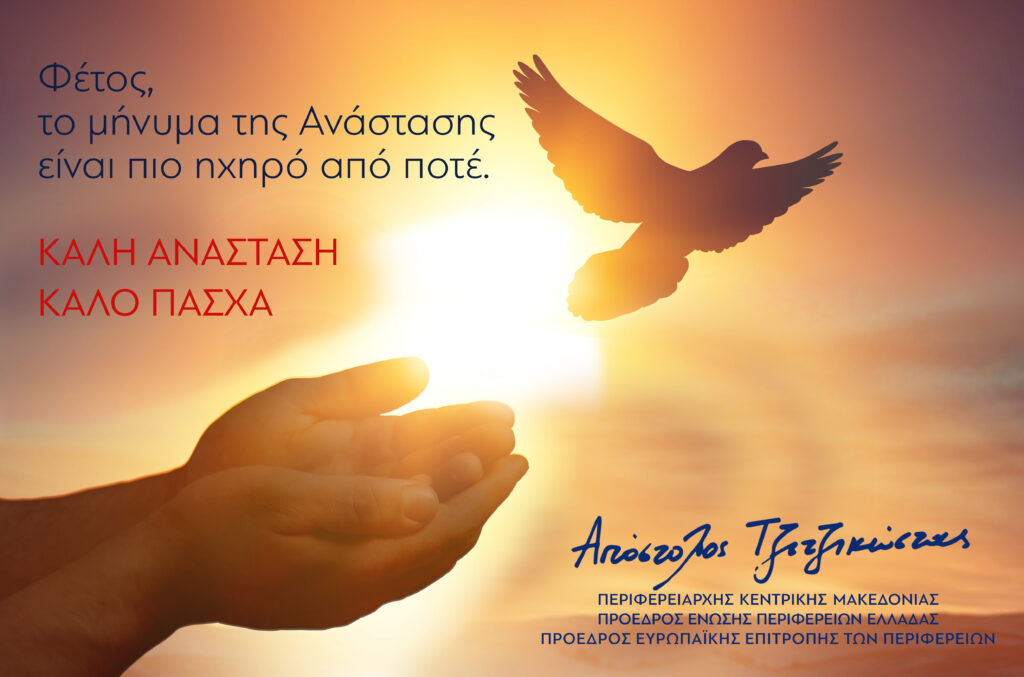 Ευχές του Περιφερειάρχη Κεντρικής Μακεδονίας Απόστολου Τζιτζικώστα για το Πάσχα.