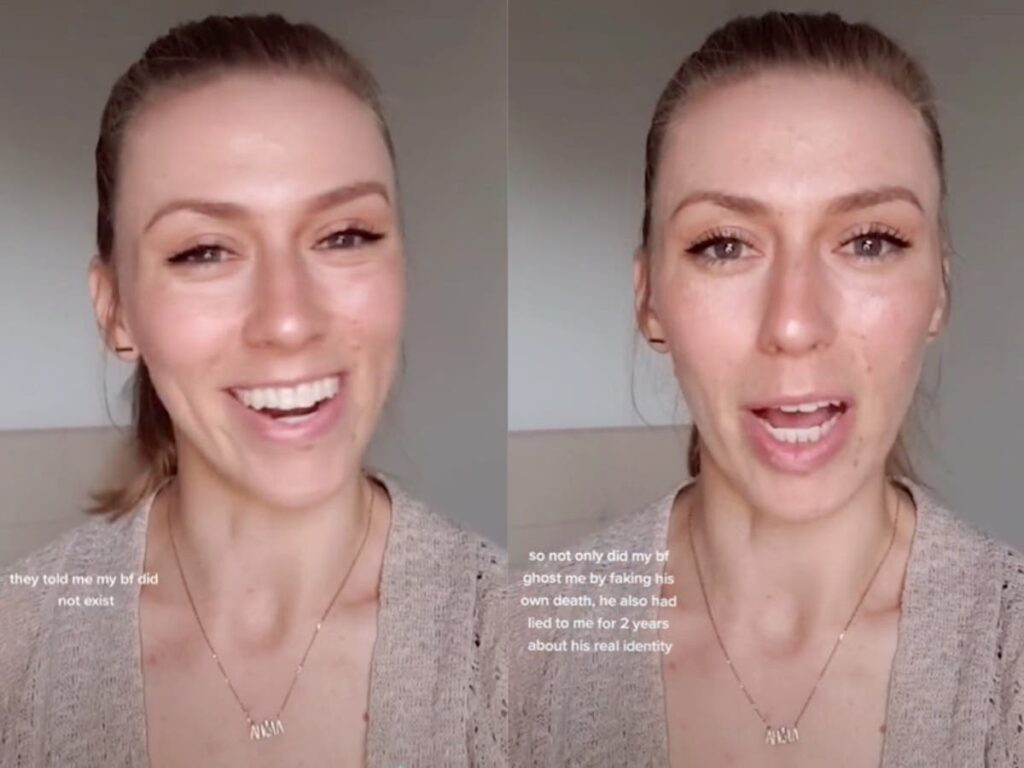 H @kathrynverb ισχυρίστηκε ότι ο πρώην σύντροφός της της έλεγε ψέματα για δύο χρόνια σχετικά με την πραγματική του ταυτότητα και στη συνέχεια έκανε ghosting προσποιούμενος πως είχε πεθάνει.