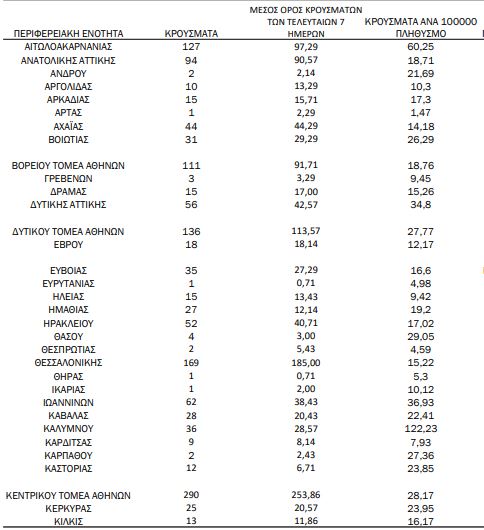 Αναλυτικότερα τα κρούσματα στις περιφερειακές ενότητες που ανήκουν στην Αττική: