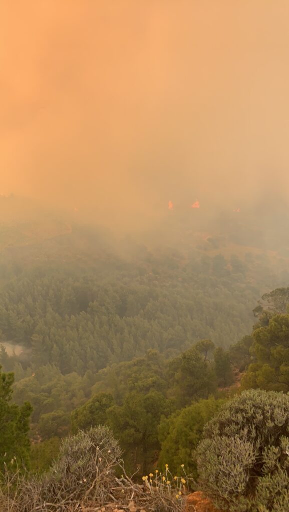 Η φωτιά συνεχίζει να είναι σε εξέλιξη καίγοντας πυκνό πευκοδάσος.