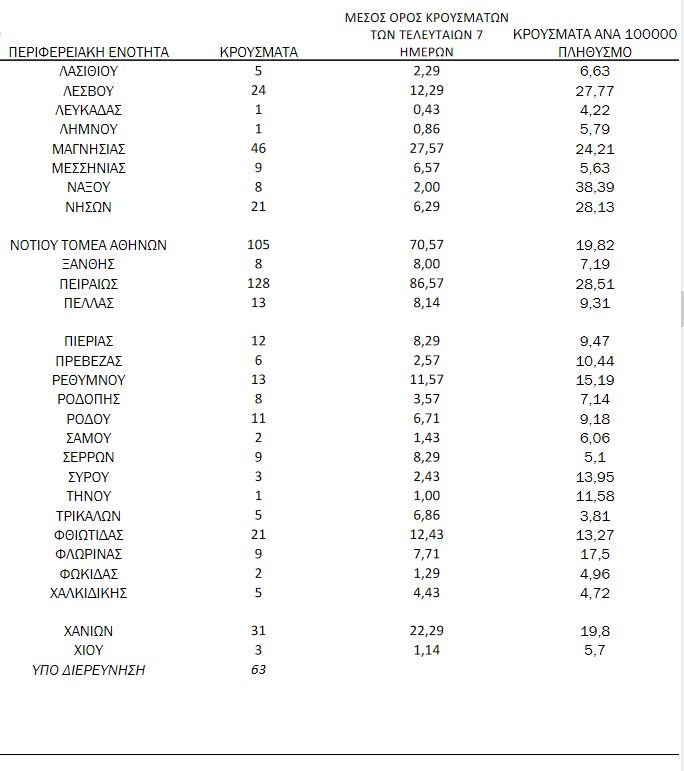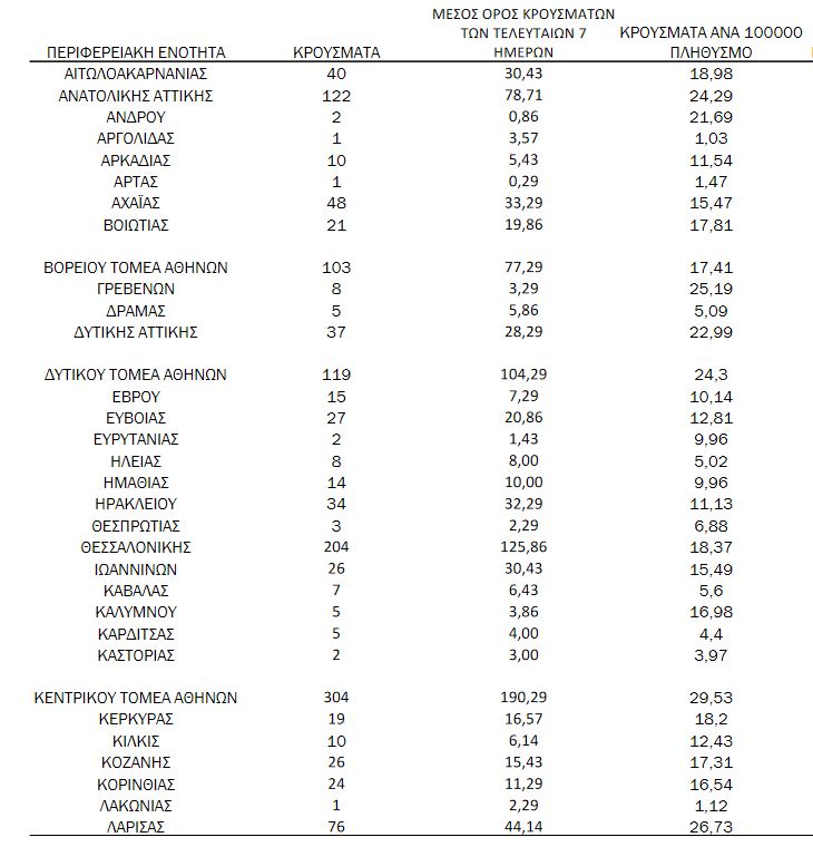 Αναλυτικότερα τα κρούσματα στις περιφερειακές ενότητες που ανήκουν στην Αττική: