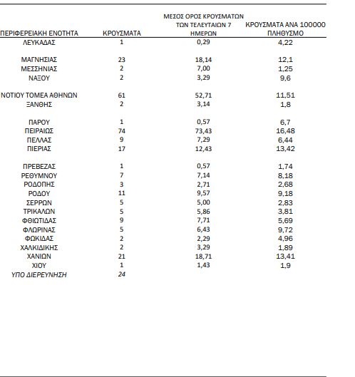 Αναλυτικότερα τα κρούσματα στις περιφερειακές ενότητες που ανήκουν στην Αττική: