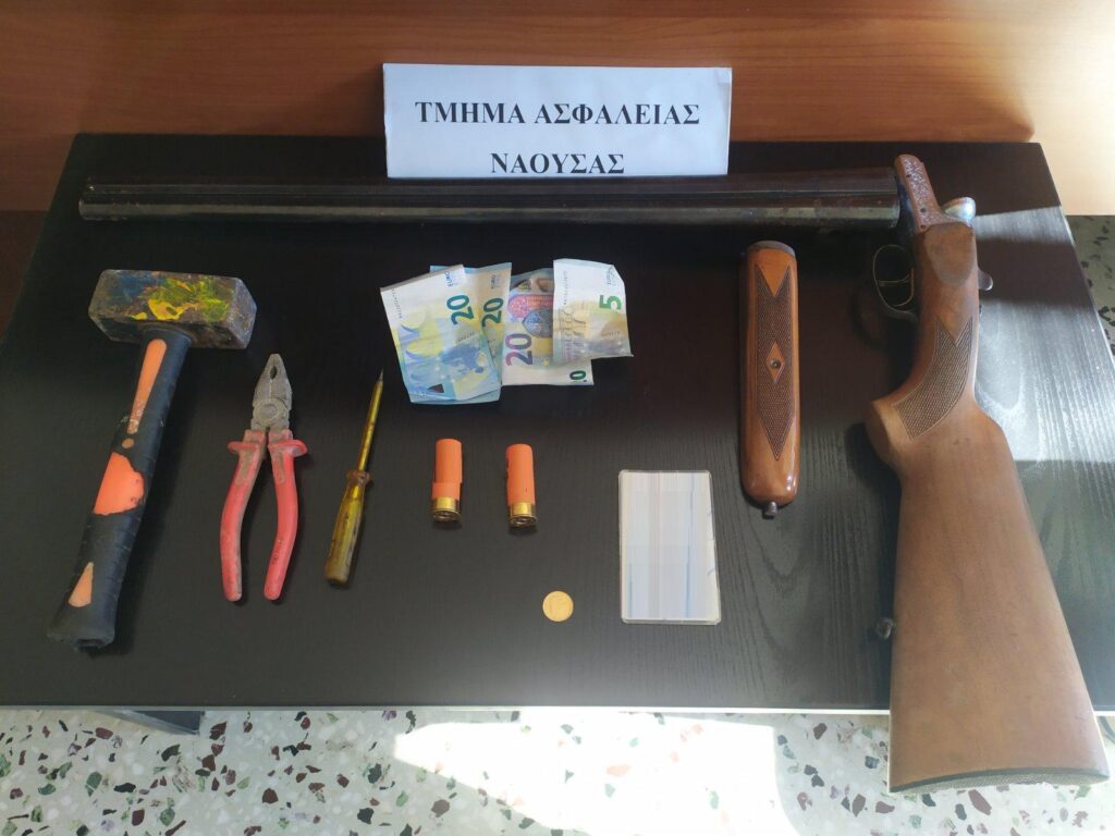 Επίσης στην παραπάνω οικία βρέθηκαν και κατασχέθηκαν ένα κυνηγετικό όπλο που είχαν αφαιρέσει το Νοέμβριο του 2020 από οικία στην Θεσσαλονίκη, χρηματικό ποσό 65 ευρώ, μία χρυσή λίρα, καθώς και διαρρηκτικά εργαλεία.