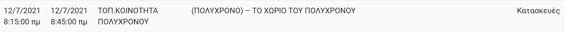 Πιο ειδικά, θα υπάρξει διακοπή ρεύματος στο Πολύχρονο, για τις ώρες 08:30 με 08:45 σε όλο το χωριό.