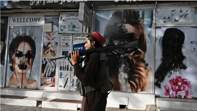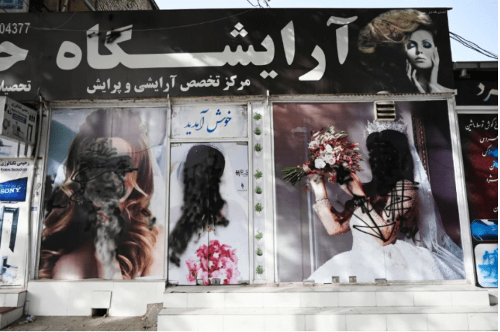Πρόσφατα, καθώς οι δυνάμεις των Ταλιμπάν πλησίαζαν στην πρωτεύουσα, τουλάχιστον ένα από αυτά τα καταστήματα ξεκίνησε να ασβεστώνει την πρόσοψή του για να καλύψει διαφημίσεις με χαμογελαστά πρόσωπα γυναικών, που πόζαραν με αμφίεση νύφης. Οι πιο πρόσφατες φωτογραφίες του Γαλλικού πρακτορείου με το βανδαλισμένο κατάστημα τραβήχτηκαν την Τετάρτη, την ώρα που μια περιπολία Ταλιμπάν περνούσε από το σημείο.