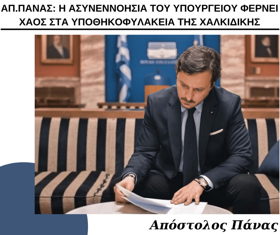 Στην υπ. αριθ. πρωτ.: 193/27-08-2021 Απάντηση που έλαβε ο Γραμματέας της Βουλής και Βουλευτής Χαλκιδικής με το Κίνημα Αλλαγής Πάνας Αποστολος από τον Υπουργό Δικαιοσύνης, έπειτα από την Ερώτησή του για την επιστροφή των υπηρεσιών και αρχείων των υποθηκοφυλακείων σε Πολύγυρο και Ν. Μουδανιά,-ενόψει της κατάργησης του Υποθηκοφυλακείου Βασιλικών και της συγχώνευσής του με το Κτηματολογικό Γραφείο της Καλαμαριάς- επικρατεί ασυμφωνία ως προς την πρωθύστερη απόφαση της Κυβέρνησης με έκδοση ΦΕΚ.