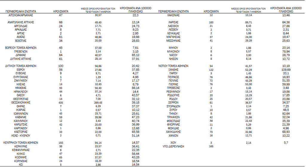 Λάρισα: Την τελευταία εβδομάδα, 20-26/09/21, παρατηρήθηκε αύξηση (+62%) στο μέσο