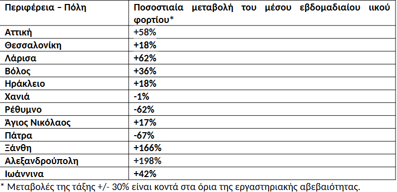 αυξητικές τάσεις κυμάνθηκαν από +36% στο Βόλο μέχρι +198% στην Αλεξανδρούπολη, ενώ