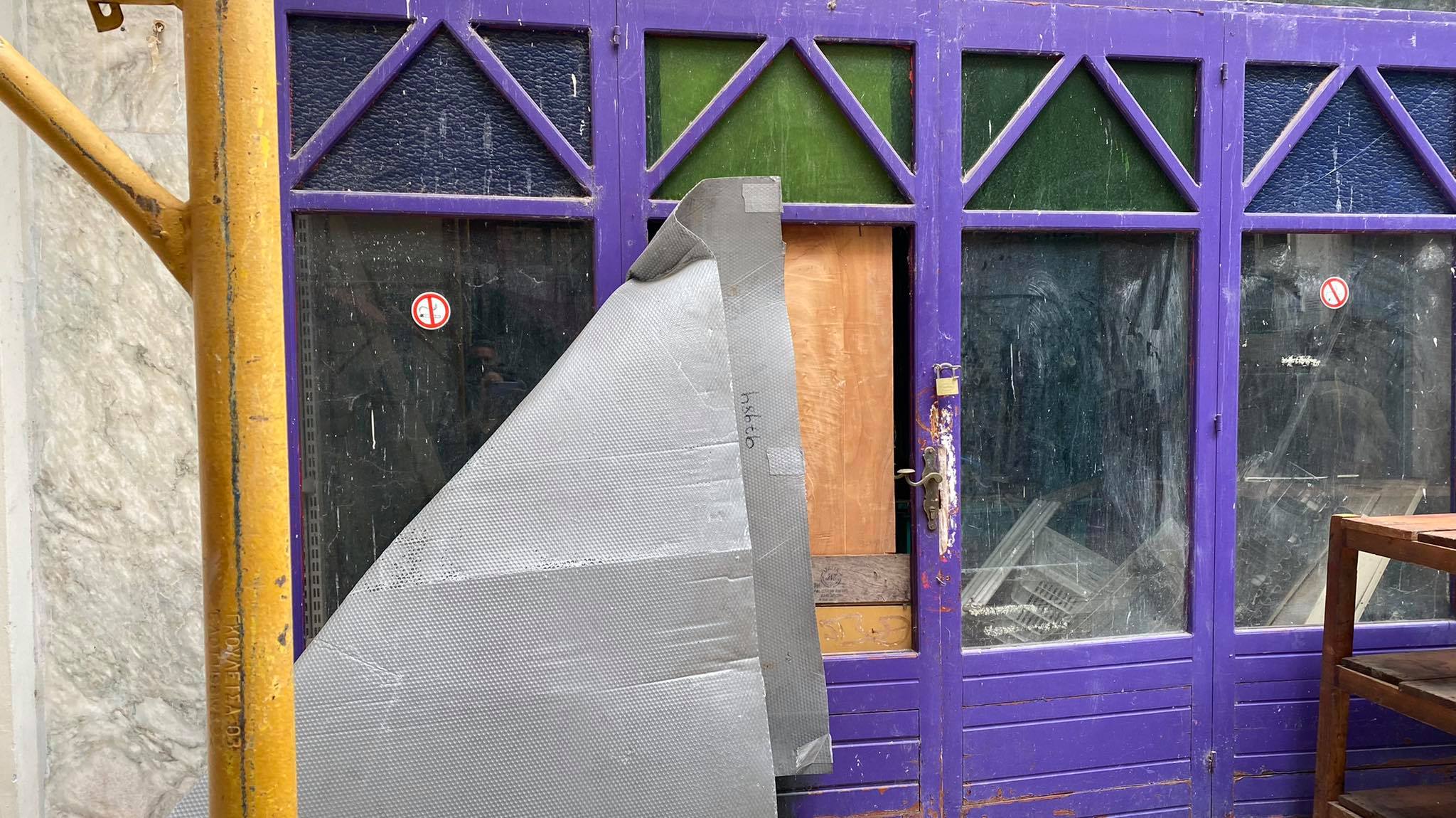Σκαλωσιές καλύπτουν την πρόσοψη του πίσω μέρους της στοάς ανά τακτά χρονικά διαστήματα, σκουπίδια περαστικών, πλακάκια παρατημένα από ανακαινίσεις παλαιότερων ετών, ρημαγμένα καταστήματα με σπασμένα παράθυρα, τα οποία και φυσικά παραμένουν κλειστά και γίνονται στέγη για τα αδέσποτα.