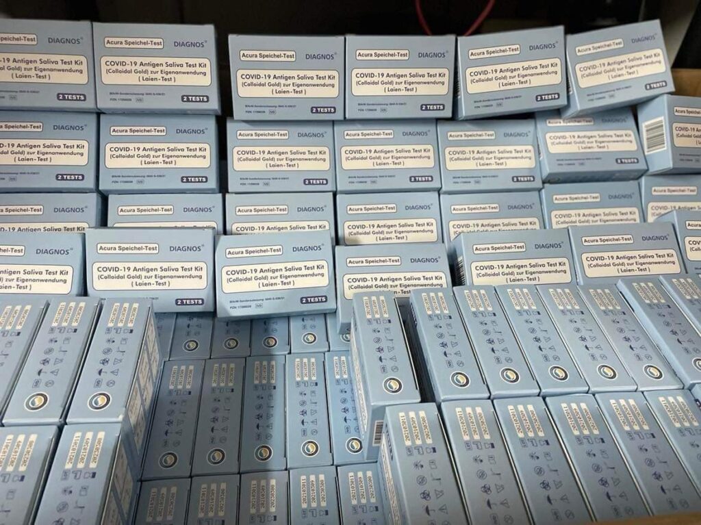 Κούτες με 800 self test στέλνουν εθελοντές από τη Γερμανία σε σχολείο της Κασσάνδρας, στη Χαλκιδική, καθώς και στο ΚΥ της περιοχής, αλλά και στο νοσοκομείο Πολυγύρου.