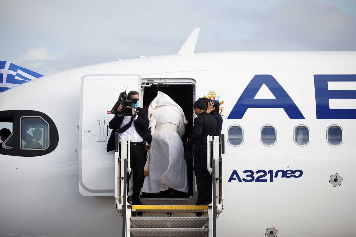 Όλα ήταν έτοιμα στο αεροδρόμιο “Ελευθέριος Βενιζέλος” της Αθήνας για να πέσει η αυλαία της τριήμερης επίσκεψης του Πάπα Φραγκίσκου στην Ελλάδα. Μια παραφωνία υπήρχε μόνο: ο δυνατός αέρας.